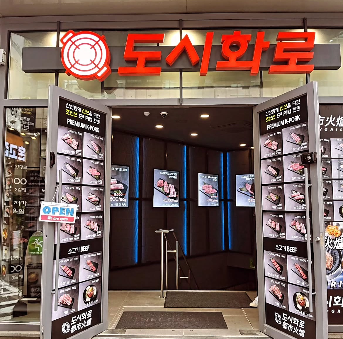 Dosihwaro blends traditional fire-grilled flavor with a cool, urban aesthetic. It's one of the most visually appealing BBQ spots in Myeongdong, with private booth options and a solid selection of pork and beef — all fresh, never frozen.