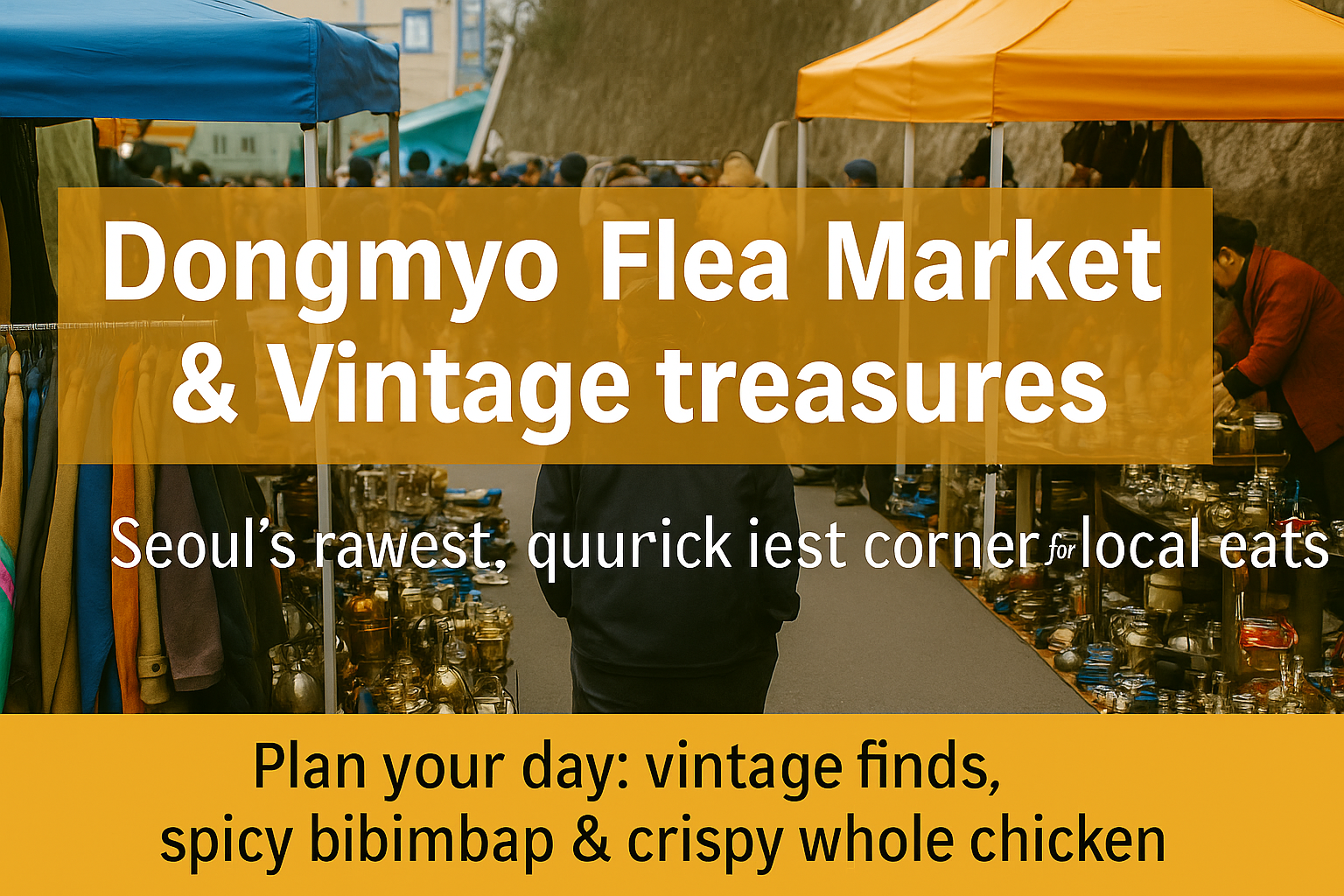 If you're looking for a local Seoul experience that blends vintage markets, street culture, and traditional food, this one-day walking course is for you. From the nostalgic chaos of Dongmyo Flea Market to the cultural charm of Seoul Folk Flea Market, and e