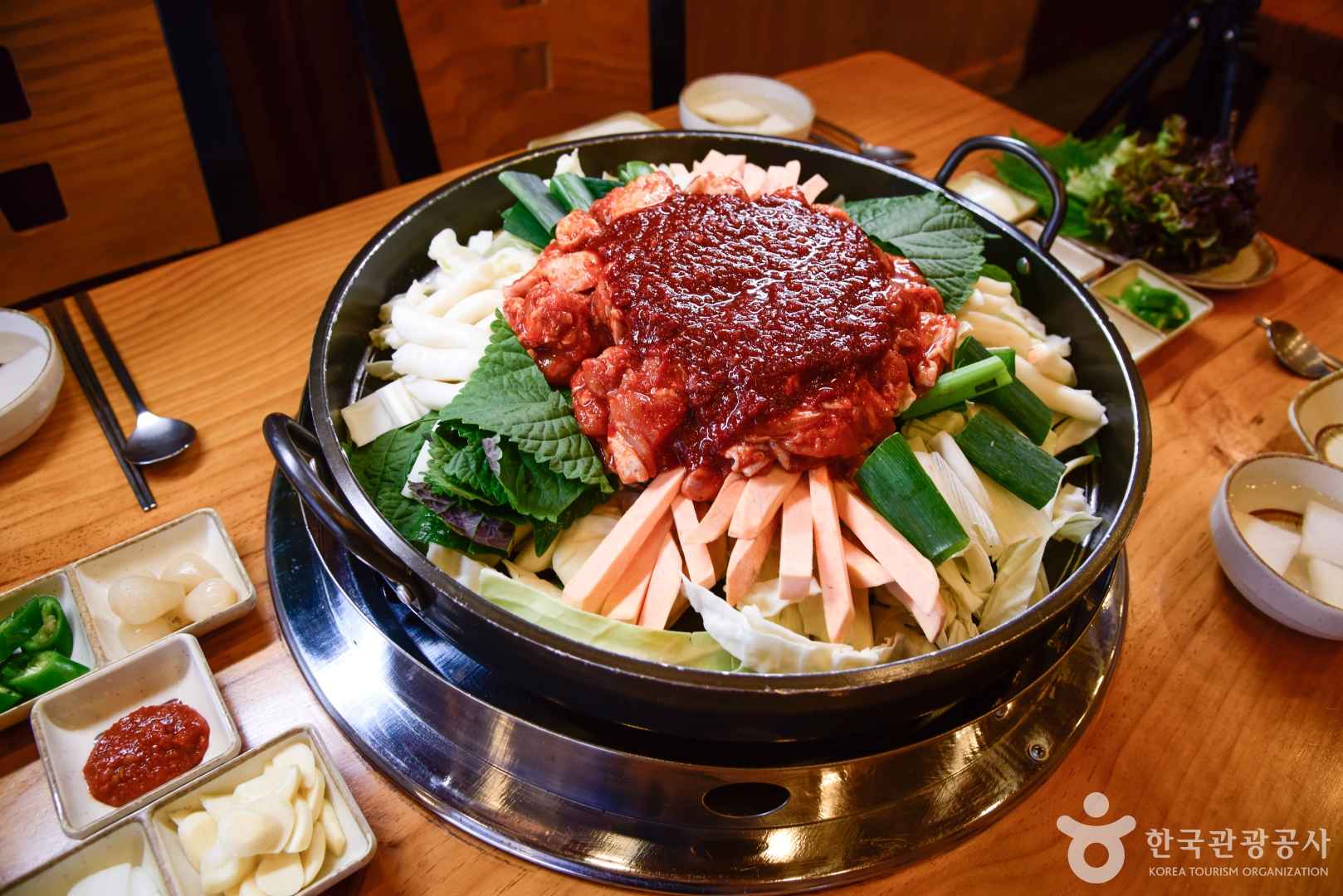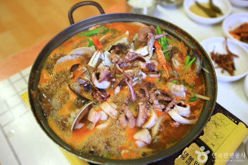 Spicy fish stew with fresh vegetables, tofu, and chili paste-based broth. Don’t let the name scare you — it's bold but clean, often compared to spicy Mediterranean fish soups. Perfect if you love seafood and want to try something more adventurous.
