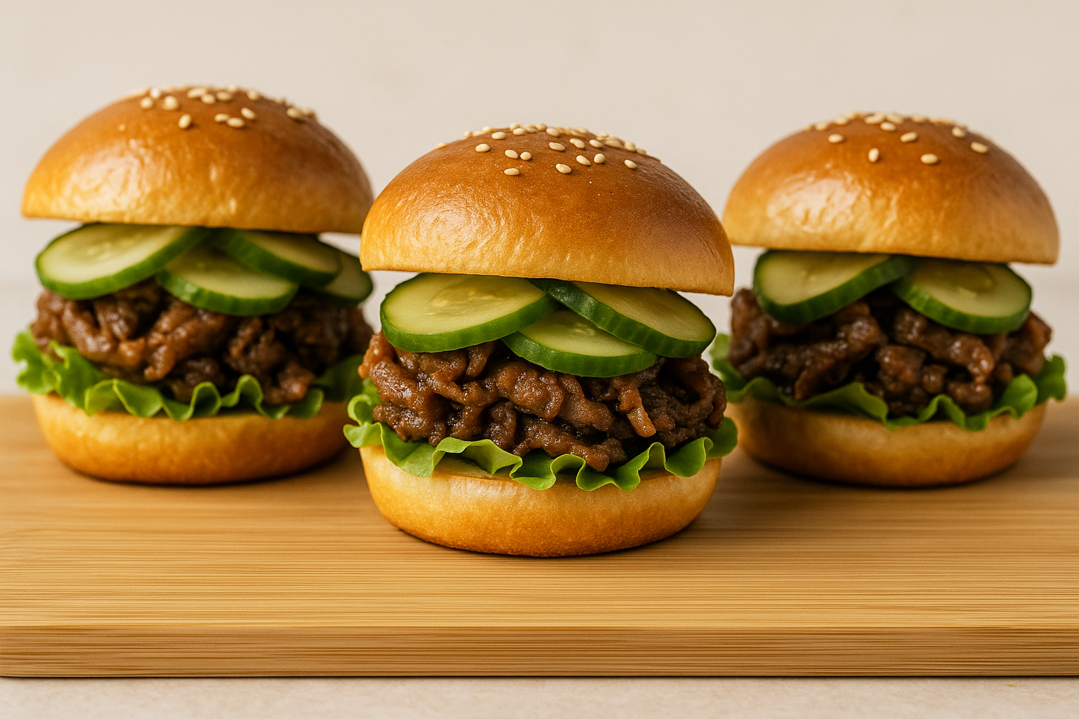 Pair sweet and savory bulgogi beef with mini burger buns for a Korean-American fusion crowd-pleaser. Add some kimchi slaw for a bold twist.