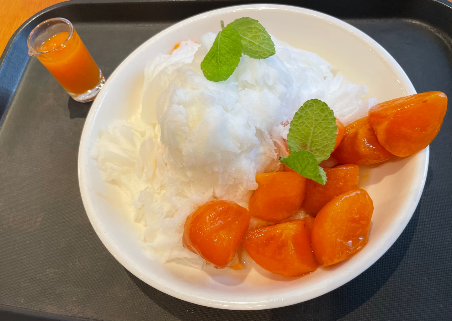 You can try this seasonal persimmon bingsu at A Twosome Place, a popular café chain in Korea. It may not be available year-round, so check if your nearest location carries it this summer.