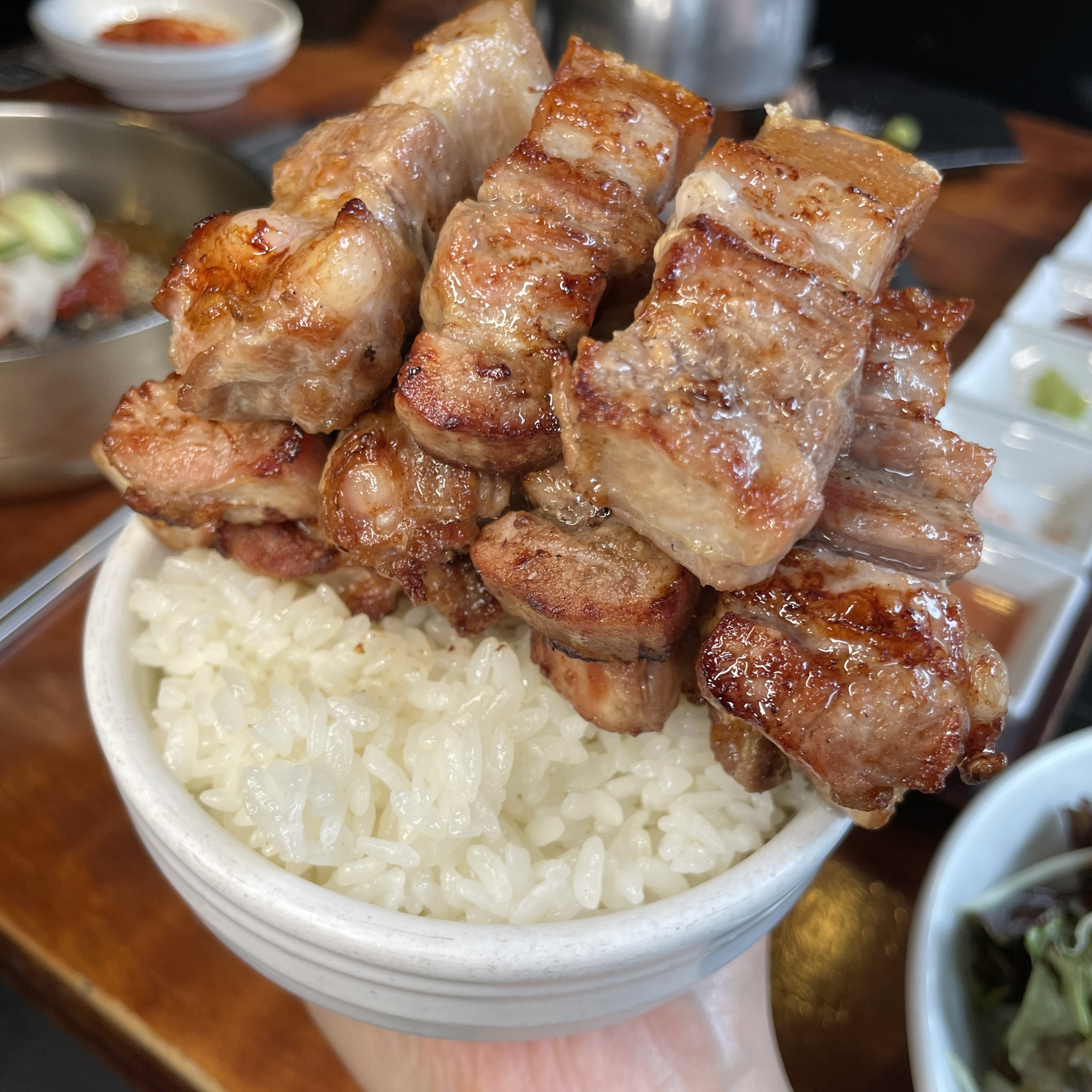 They specialize in high-quality Korean pork, including thick-cut samgyeopsal (pork belly) and homemade pork galbi, all paired with Paju-hyangmi, a fragrant premium rice variety.