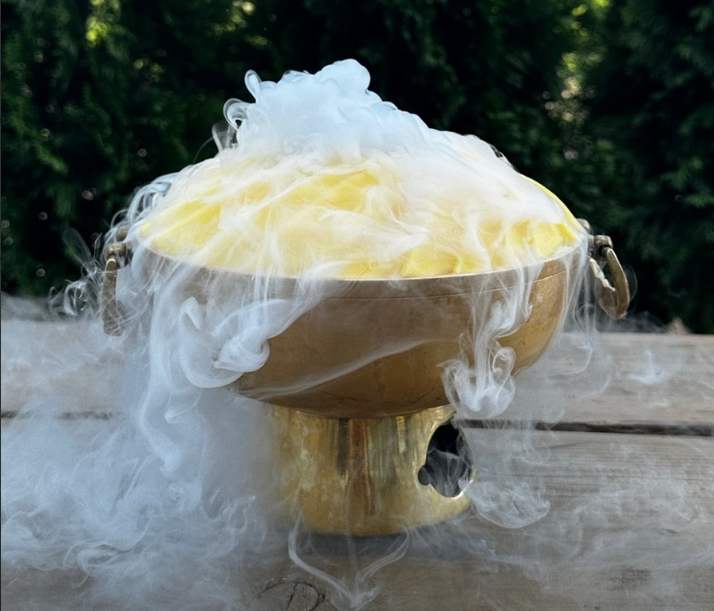 This dramatic dessert is served in a traditional brass royal hot pot (신선로), complete with dry ice fog rising from the center. The shaved ice is topped with Korean fruits, nuts, and traditional sweets — an experience that feels like a scene from a historical drama.