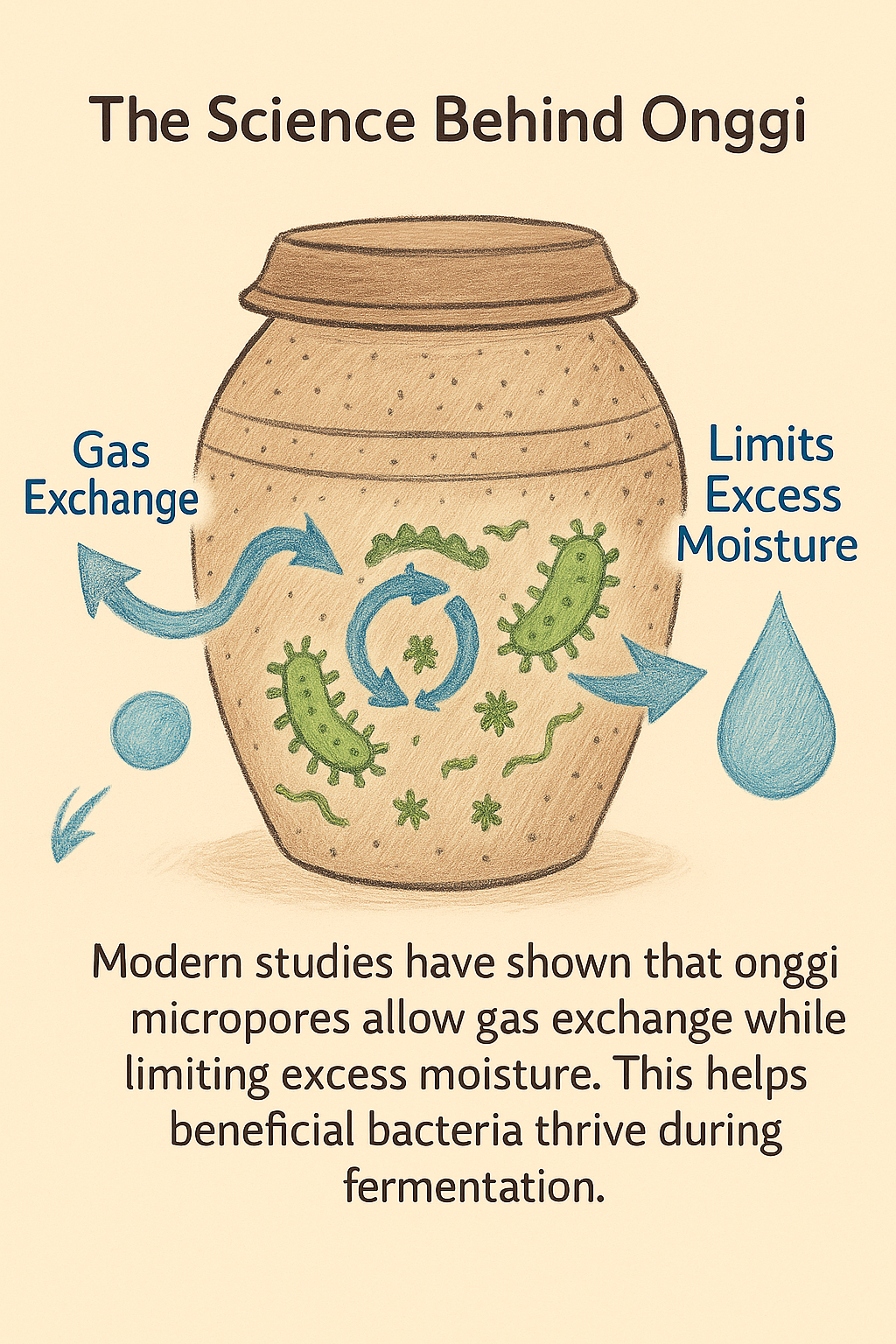 Onggi's micropores allow gas exchange while limiting excess moisture.