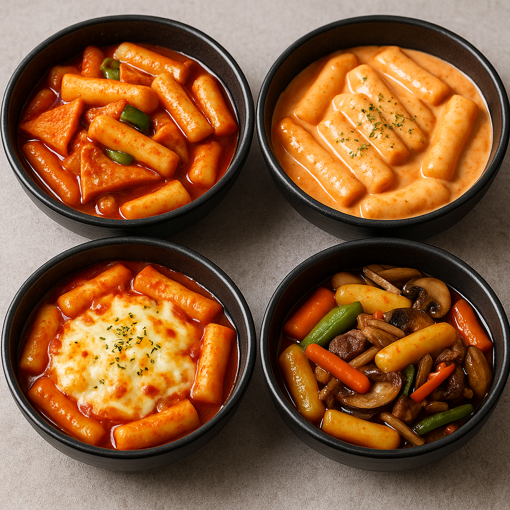 - Gungjung Tteokbokki – soy sauce-based, non-spicy version from royal court cuisine